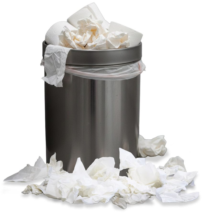 - מסתימות בשירותים ובכיורים כתוצאה מנייר ניגוב הידיים